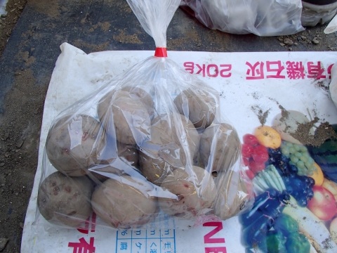 この日は、新しいジャガイモの品種、さやあかねの種芋を植え付けをしました。