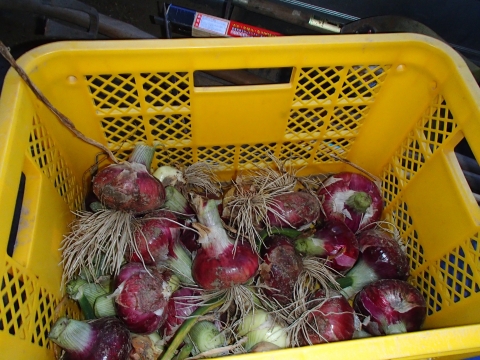今日のしんしん農園ですが、アクツ(川べり)のしんしん農園で、タマネギが取れました。