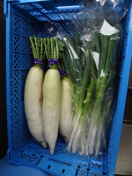 私は、二つともまだ、出来ていないので、ジャガイモ(さやあかね)とネギ、ダイコンをメインに野菜販売をします。