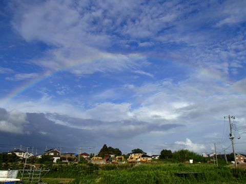 今日、川べりのしんしん農園で、耕運機をかけていたら、海の方で、ニジがかかりました!o(≧▽≦)o