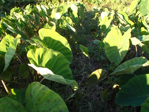 海老芋を先日、記事にしましたが、その里芋が生えている畑がこちらです。
