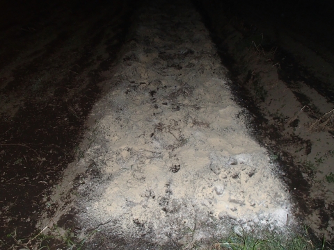 今日は、ノガタのしんしん農園で、ソラマメ、スナップエンドウ用の肥料をまいていました。