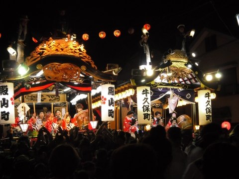 夜は、山車が町を練り歩いて、山車の上には、芸者が!!!(」゚Д゚)」