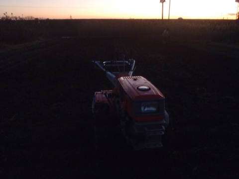 しんしん農園 今日の景色 ゚゚ヽ(´ー`)ノ 耕運機と夕日