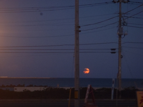 そして、帰りの阿字ヶ浦から、スーパームーンが海から上がってくるところが、見えました。