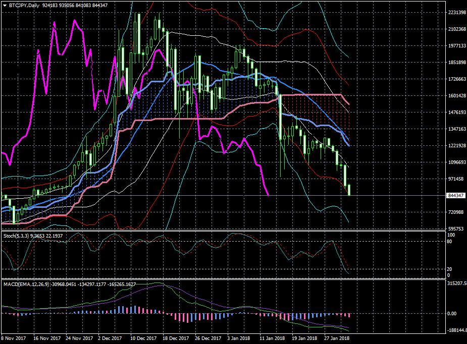 大崩壊して、下値の支え線である100万円を切ってきました。