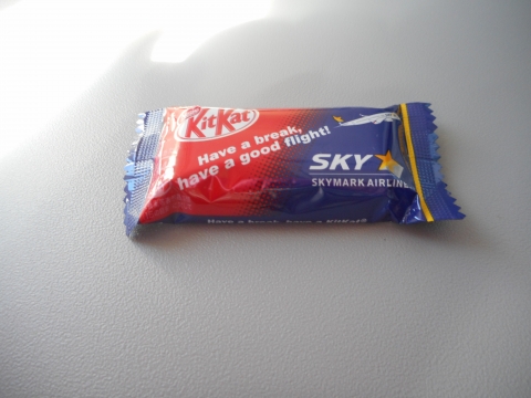 スカイマークは、20周年記念と言うことで、特別なキットカットを貰いましたよ。