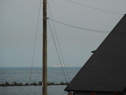 今日、畑に行く途中で、ひたちなか市の阿字ヶ浦というと頃で、船、フェリーが見えました~~(*’▽’*)ノ