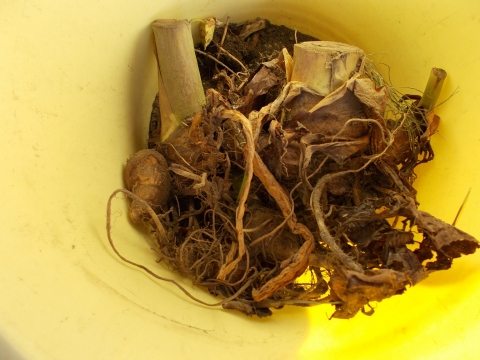 サトイモ を試し掘りしてみましたが、 まだ、ちょっと早いかも知れません。。。。щ(゚Д゚щ)