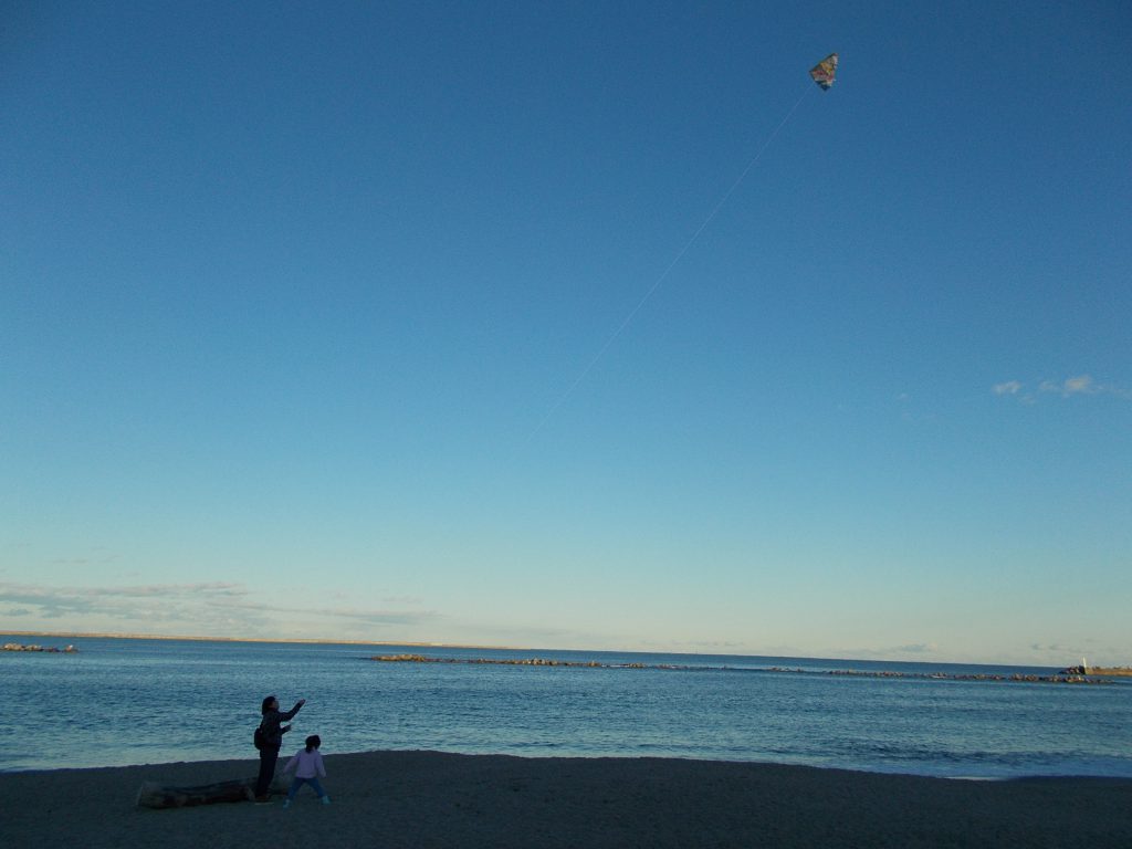 ひたちなか の 阿字ヶ浦海岸 で 凧揚げをしている人がいましたよ~( ^∀^ )